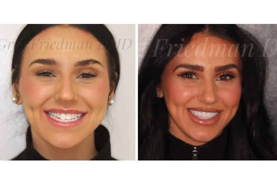 This cosmetic dentistry patient wanted a wider smile. When creating a smile that is wider, what the patient wants is to actually close the buccal corridor (space between the teeth and the cheek). This gives the appearance of a full smile which patients often desire. Dr. Gregory Friedman placed upper 10 porcelain veneers giving this patient a natural full smile. Beautiful, confidence-boosting result!