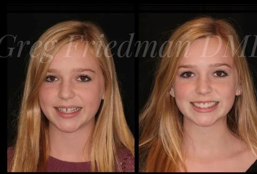 Smile on, braces off! Smile courtesy of Dr. Friedman using a motion appliance to realign back teeth and finishing with advanced braces.