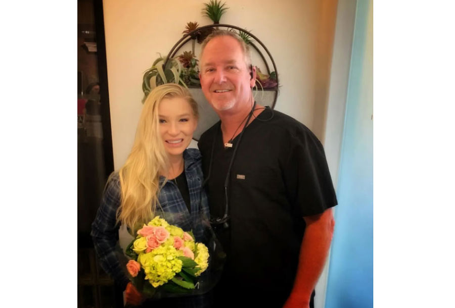 This is one of our favorite Vegas patients. She traveled to see Dr. Friedman for her smile makeover & quickly became a dear friend. Her smile speaks for itself. Dr. Friedman used a laser to contour her gum tissue allowing her to ‘show more teeth’ requested by the patient. Doc then placed a combination of upper 12 porcelain veneers & crowns giving her that WOW smile. Gorgeous!